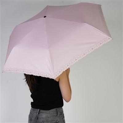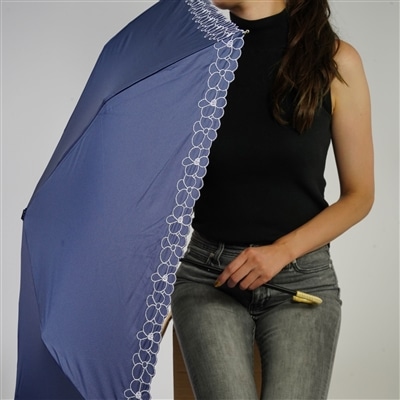 フラワー刺繍トリミング晴雨兼用折りたたみ傘