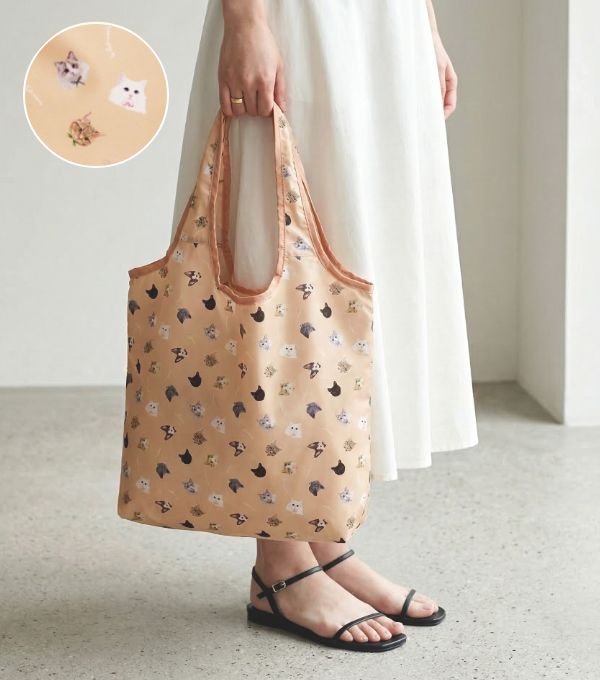 猫フェイスプリントが目を引く、気軽に持てるエコバッグ。簡易的な保冷・保温機能付きで、食品やドリンクの持ち運びにも便利。コンパクトに畳めるので、バッグに忍ばせておけば急なお買い物にも活躍します。