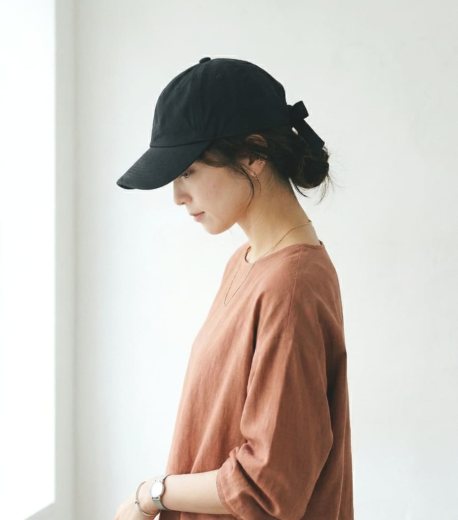 バックスタイルのリボンがポイントのキャップ。
